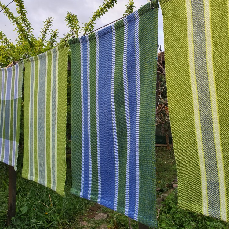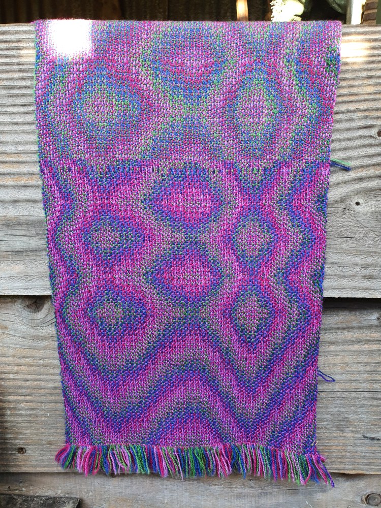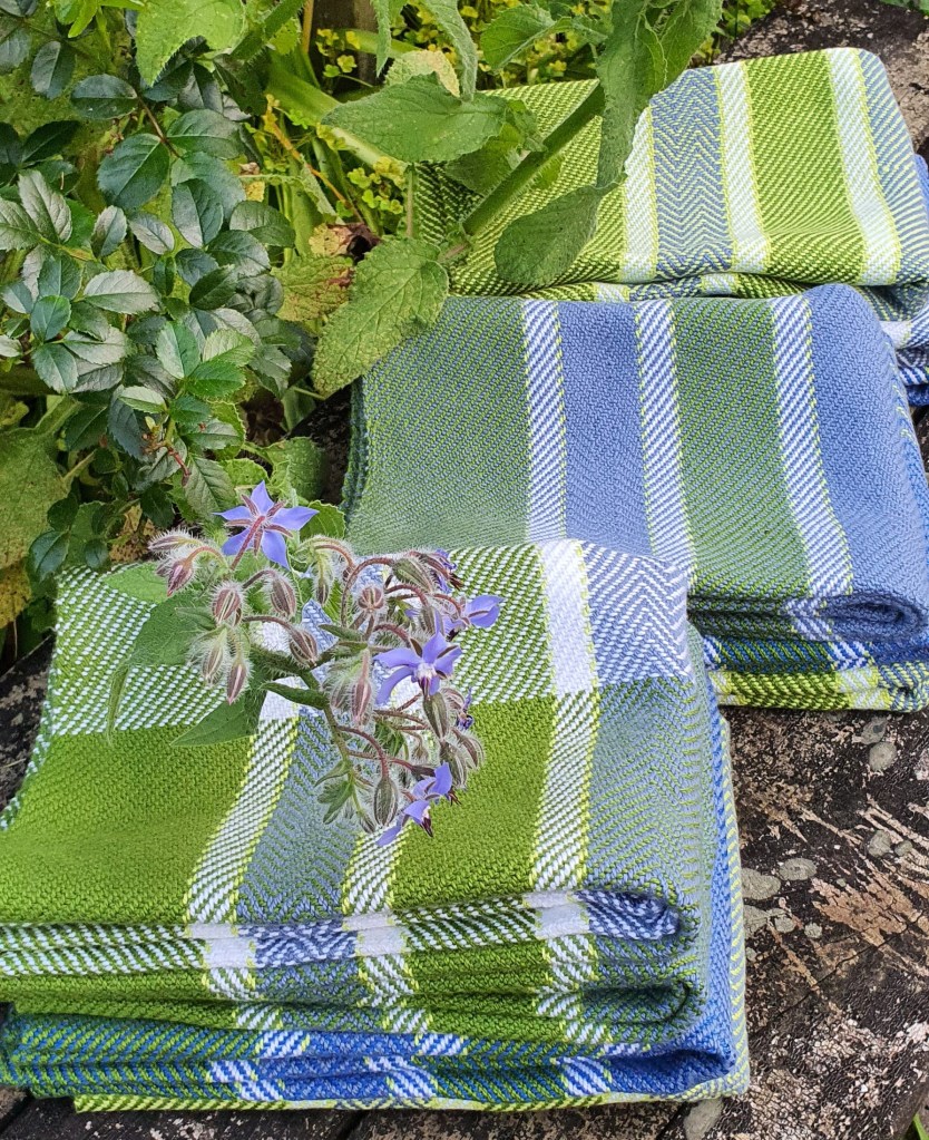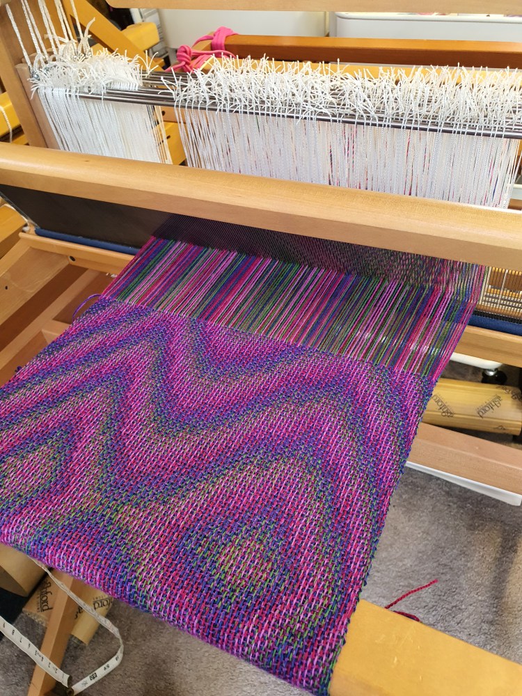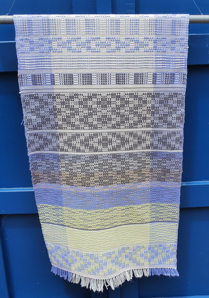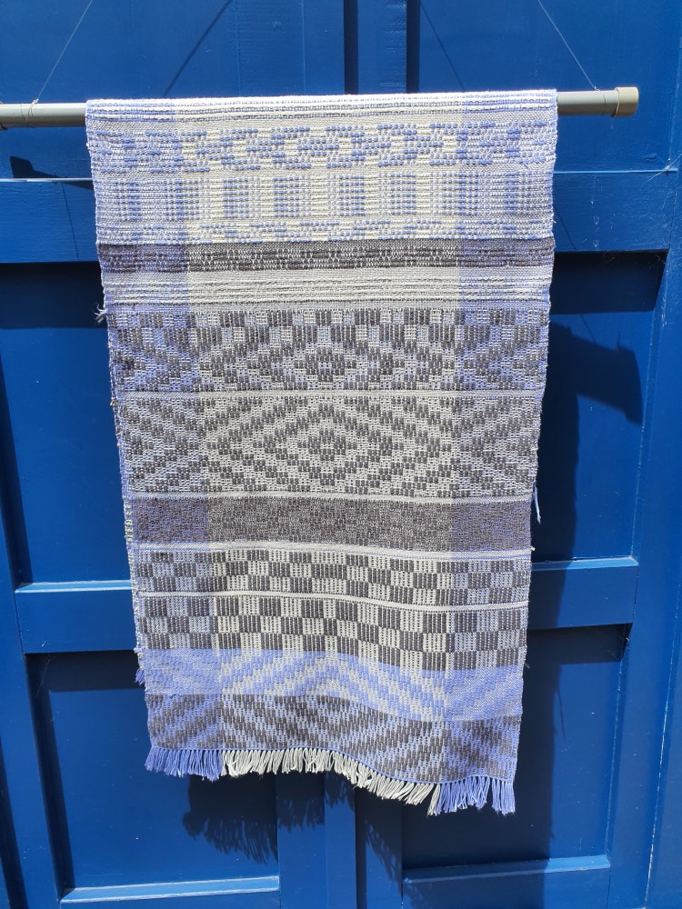 I’m still working my way through Season 6 of Jane Stafford’s School of Weaving, I have a rather hopeful plan that I will finish all the lessons by the end of the month. Episode 6 is Crackle Weave which I hadn’t tried before so it has been fun experimenting with this technique and weaving some tea towels. Below are a couple of photos of the sampler I wove on the warp first. The towels are waiting to be hemmed and then I will take some photos of them.